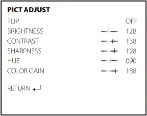 - SHARPNESS ( 128 / 0-255 )