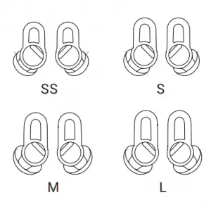 - Four pairs of silicone sizing plugs (M-size silicone sizing plugs are attached to the earbuds when shipped)