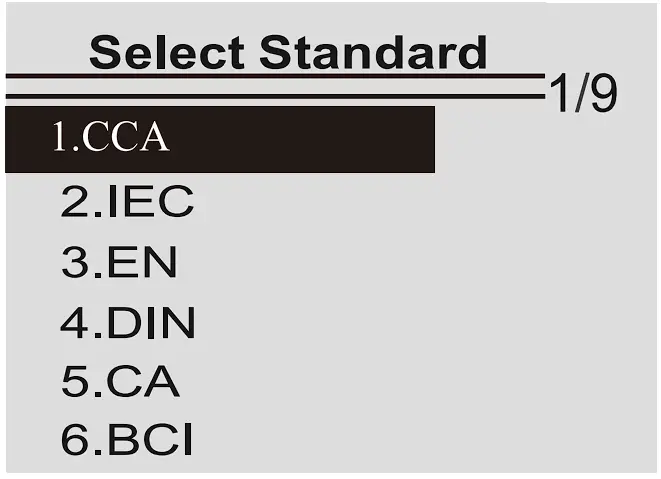 European Automobile Industry Association Standard SAE: Society of Automotive Engineers Standard From the [Select Type] screen, Press UP/DOWN key to select the Standard, then press ENTER key to confirm