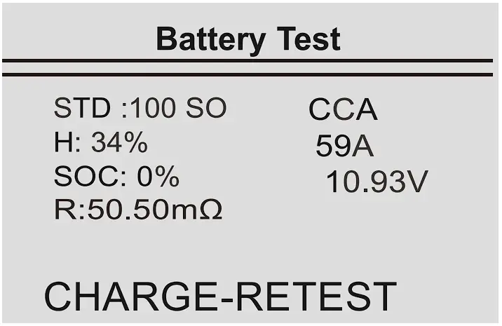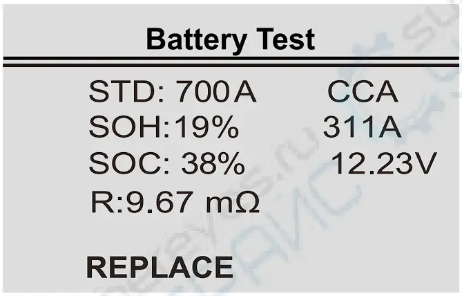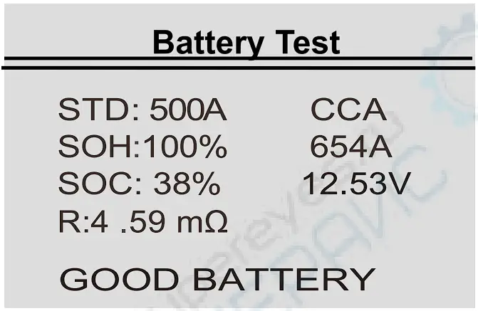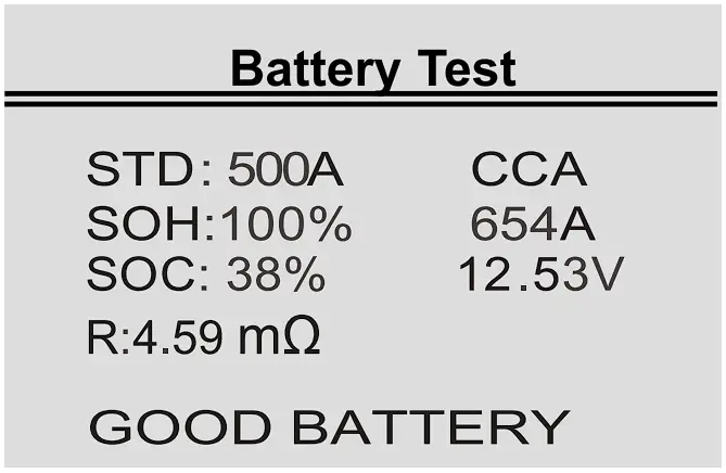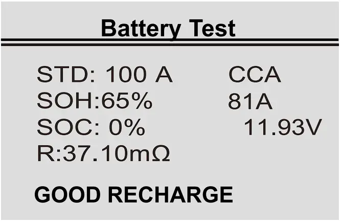 Unstable battery shall be recharged and retested to avoid error.If same test result appears after recharge and retest the battery is regardeces damaged, replace the battery