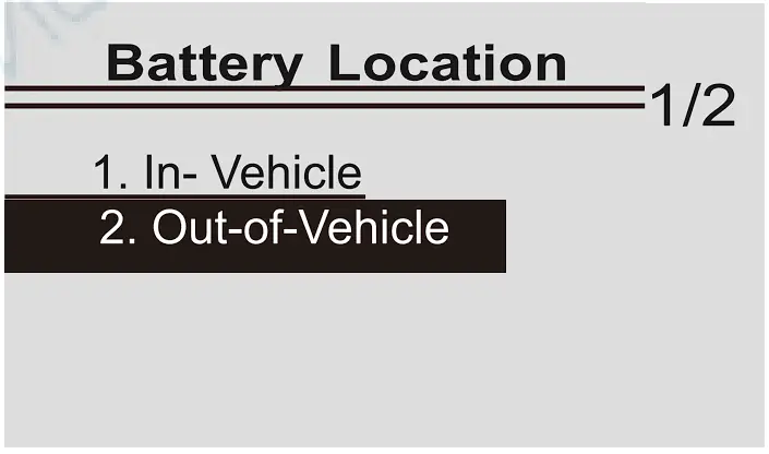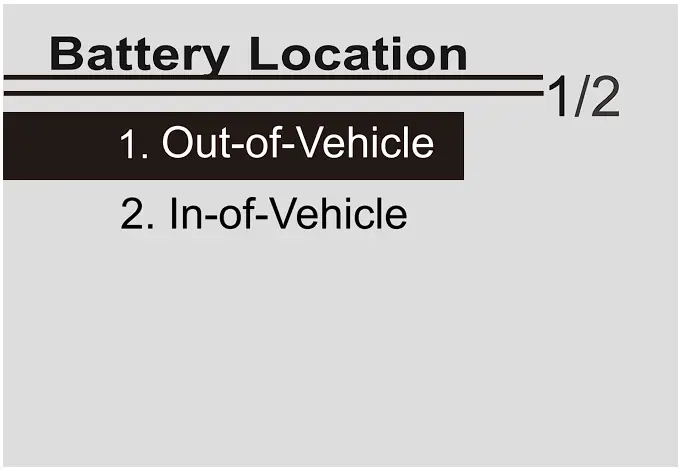 Press UP/DOWN key to select the battery location, in vehicle or out of vehicle, then press ENTER key to confirm