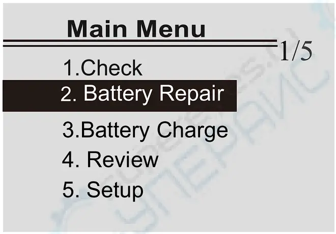 Press UP/DOWN key to select Battery Repair, then press ENTER key to confirm.(You can also press Repair shortcut key to enter)