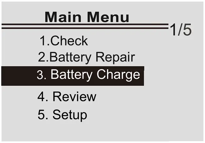 Press UP/DOWN key to select Battery Charge, then press ENTER key to onfirm.(You can also press Repair shortcut key to enter)