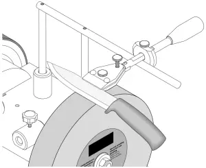 Measure the angle of the grinding bezel by comparing the cutting edge to the notches. Then, you set the determined angle at the device by changing the height of the universal support. To do so, perform the following steps: