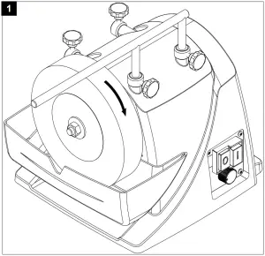 Lower the water container when working with the leather disc at high speeds. In order to maintain an even grinding speed with a decreasing grindstone diameter, the speed can be adjusted steplessly with the speed controller.