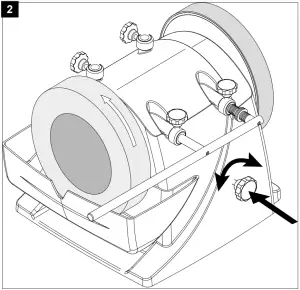Expert tip: You can work in the free-handed mode for the trimming itself. You achieve a more precise result if you keep the tool in the device in the position in which you ground the tool. With the star grip screw on the rear side of the machine housing (see Figure 2), you can set the contact pressure on the friction wheel. This is necessary if when trying the honing wheel stops.