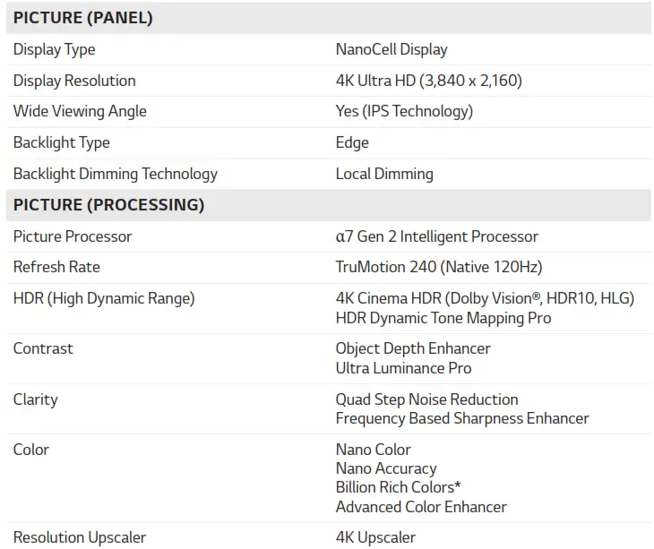 SM8600PUA Series 4K HDR Smart LED NanoCell TV W/ AI ThinQ Specifications Manual – Original PDF