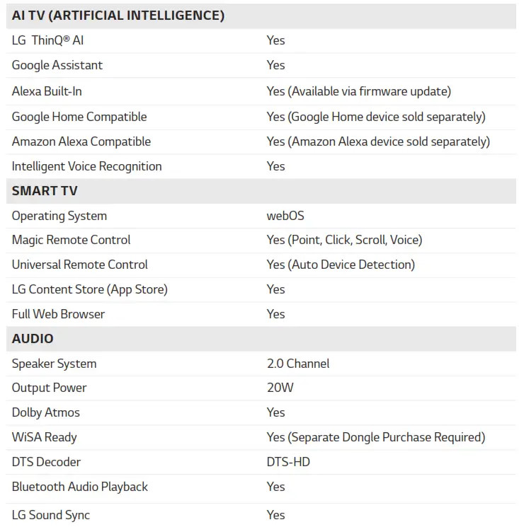 - LG ThinQ® AI | Google Assistant | Alexa