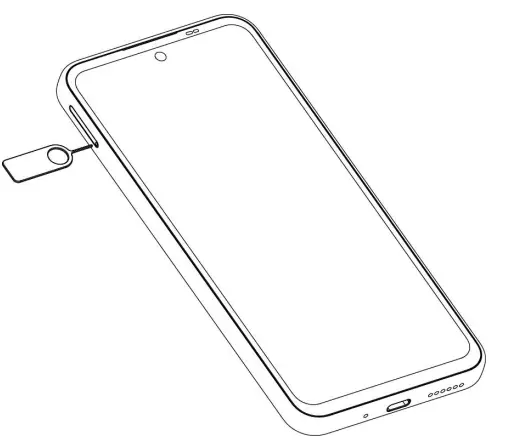 CAUTION: Never replace the included tray eject tool with sharp objects. Ensure that the tray eject tool is perpendicular to the hole. Otherwise, the phone may be damaged. - Pull out the card tray. You can place a nano-SIM card into the card slot on the right side and a microSDXC card (optional) into the card slot on the left side, as shown. Note the notches and the shapes of the cards and the card slots. Carefully slide the tray back into place.