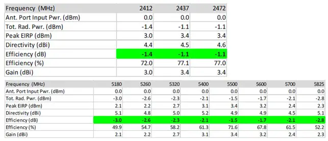 The module uses a PCB antenna that provides with max 3.4 dBi gain in the frequency range from 2412-2472 MHz and 5.18-5.835GHz