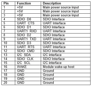 for Wifi. The module supports standard SDIO v3.0 interfaces, backward compatible with SDIO v2.0 and supports a high-speed UART interface.