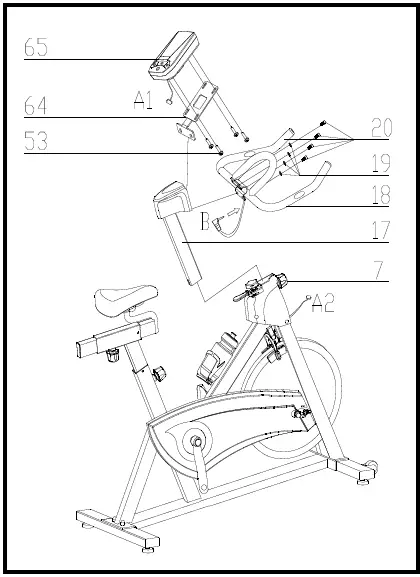 4. Attach the Computer (pt.65) onto the Computer Holder (pt.64) using 4 bolts (pt.53). Be sure to connect the plug (A1 & A2)