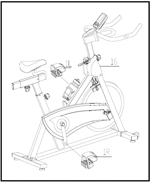 1. The Pedals (pt.1 L & pt.1 R) are marked “L” and “R” – Left and Right. Connect them to their appropriate crank arms. The right crank arm is on the right- hand side of the cycle as you sit on it.