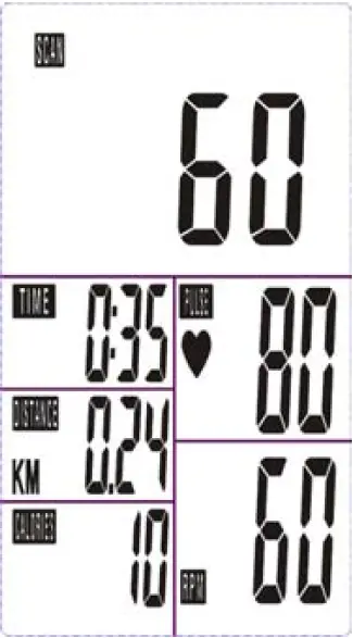 RPM: Displays the Rotation Per Minute. The RPM and SPEED will rotate every 6 seconds after exercise starts.