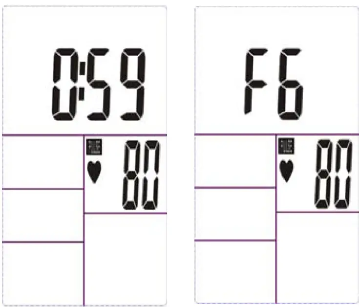 TIME will start to count down from “00:60”. The Pulse signal will blink according to the user’s pulse. When countdown reaches “0”, it will show F1~F6.