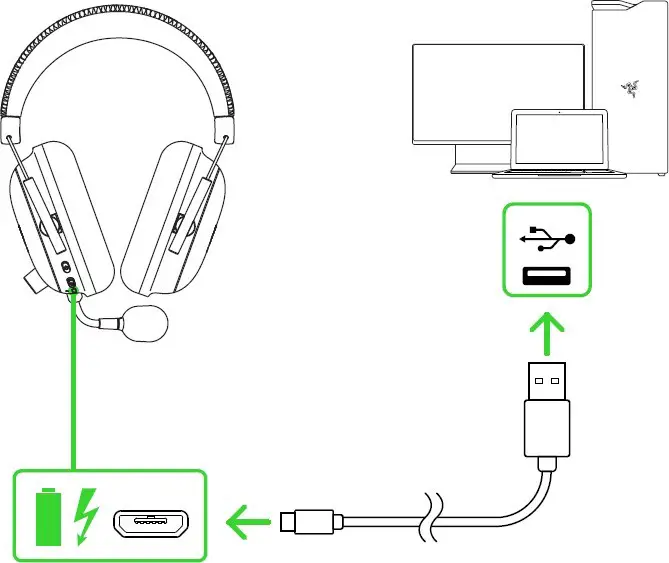 Connect your Razer BlackShark V2 Pro to a powered USB port using the charging cable.