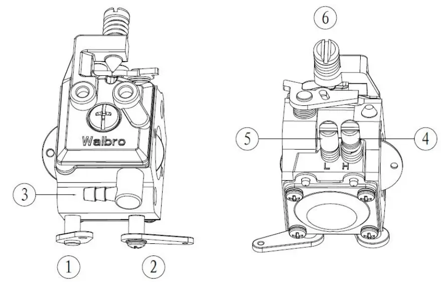 ⑤—Idle speed needle, Fully closed (clockwise) before exiting(anticlockwise) 1.5-1.75 times;