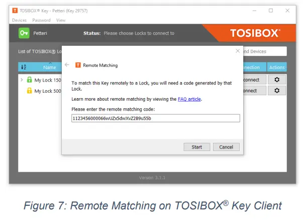 - Use the Remote Matching functionality on the TOSIBOX® Key Client to add the