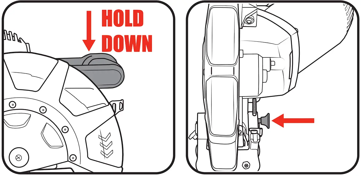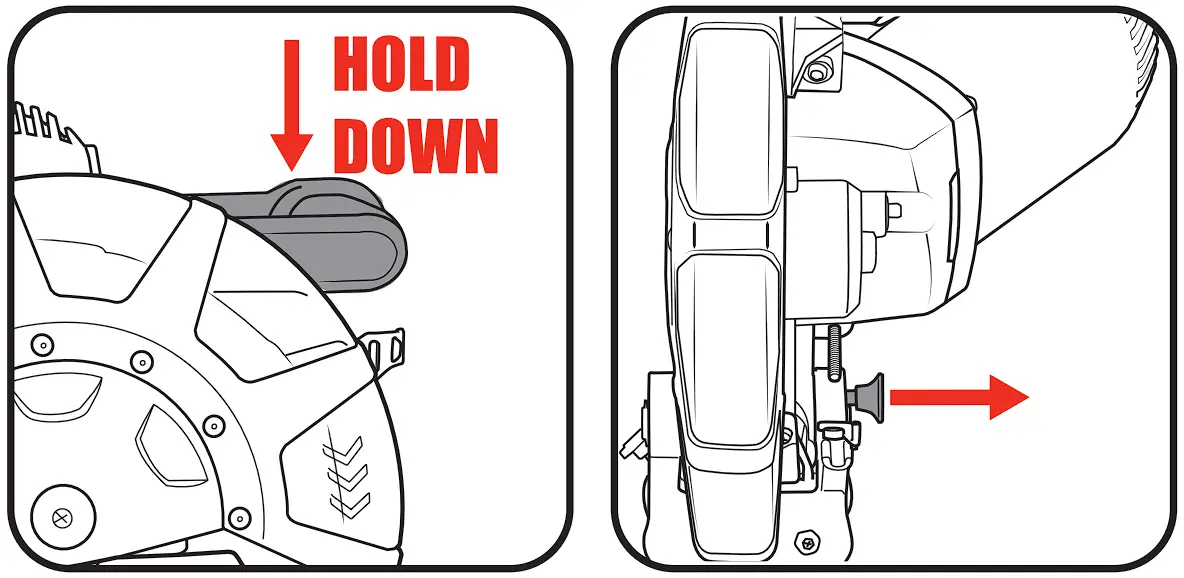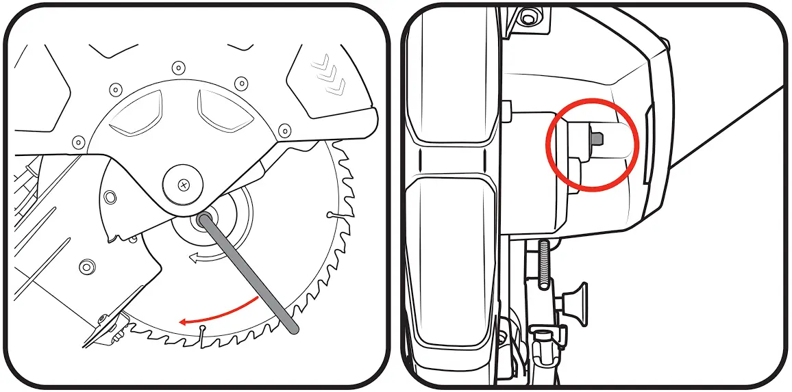 - Swing the blade bolt cover back into place and secure it with the guard cover screw. Make sure the lower guard operates smoothly and properly protects from the blade before using the saw.