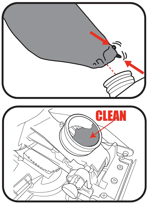 - Squeeze the clamp at the end of the dust bag, place over the dust extraction port.