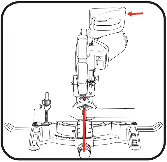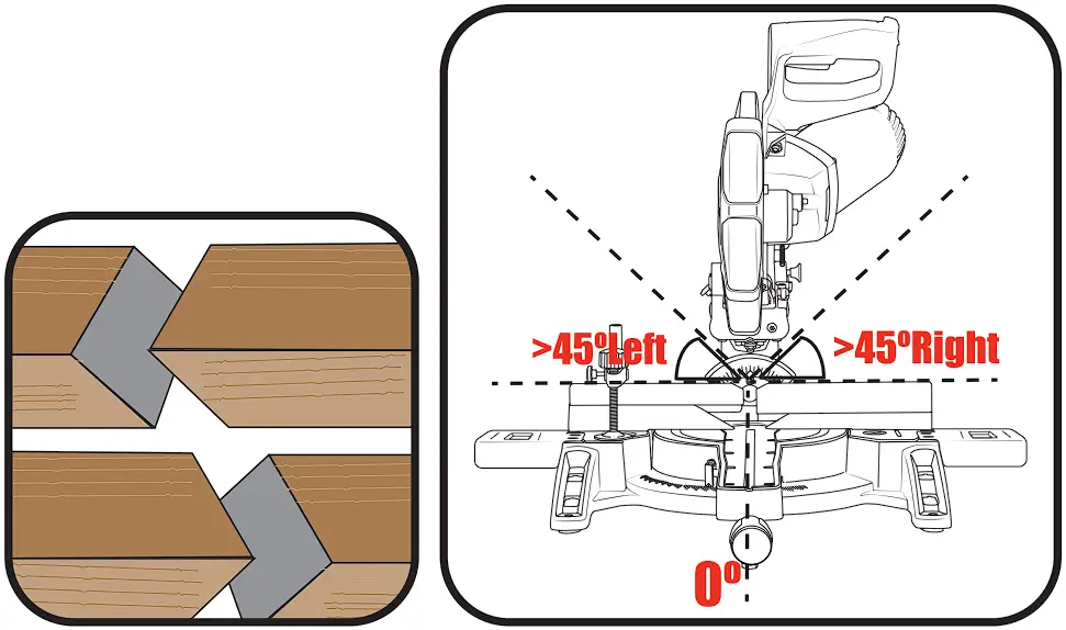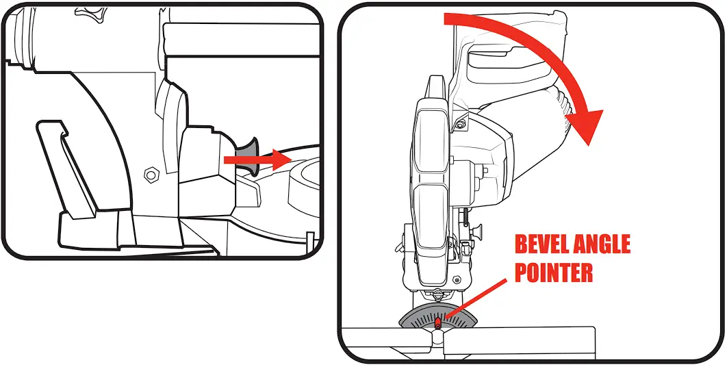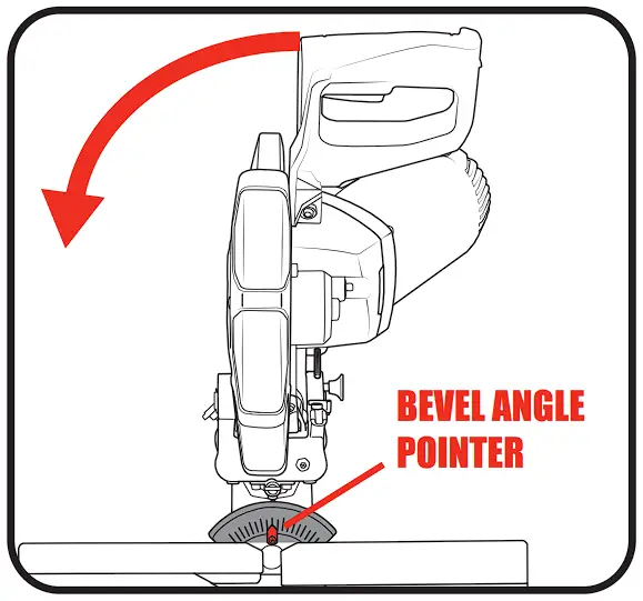 To bevel LEFT, tilt the cutting head to the desired bevel angle.