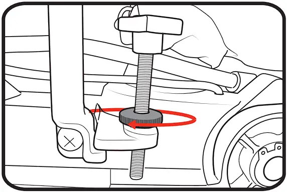 - Tighten the blade bolt in the centre of the blade by turning the Hex Key ant-clockwise as the blade bolt is a left hand thread.