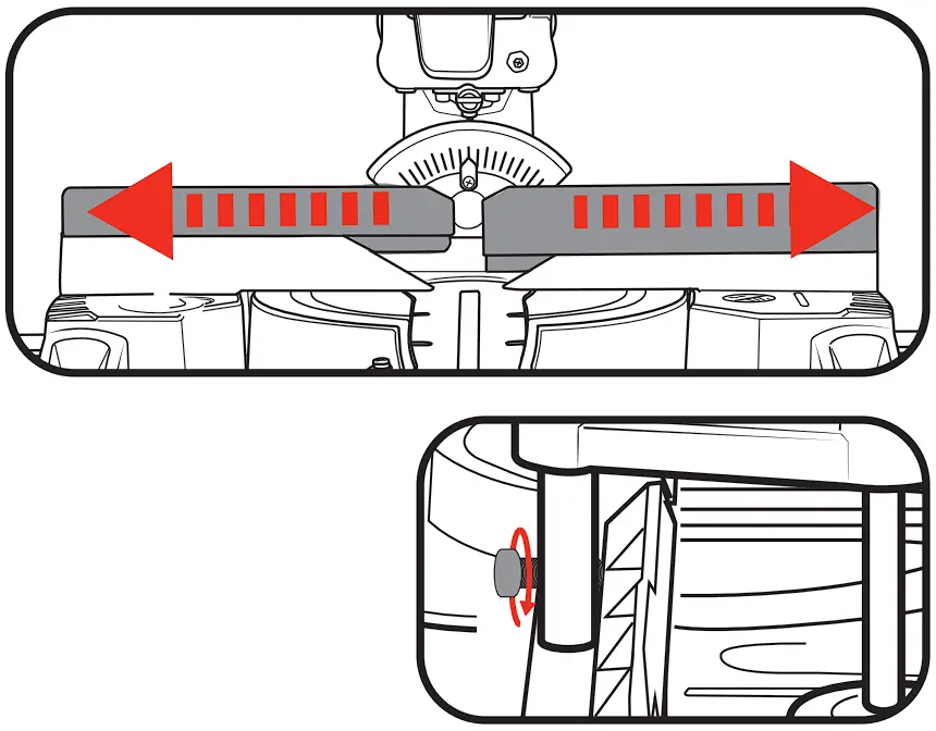 ![]() | WARNING! ENSURE THE MITRE TABLE LOCK IS TIGHT BEFORE MAKING A CUT. FAILURE TO DO SO MAY RESULT IN THE MITRE TABLE MOVING DURING OPERATION & CAUSE SERIOUS PERSONAL INJURY. |