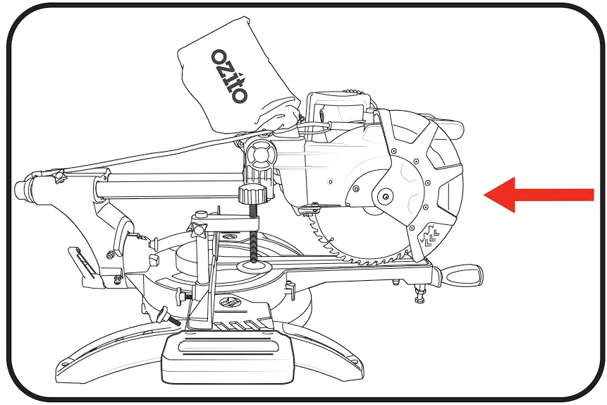 - Push the saw through the workpiece. Do not pull the saw through the workpiece. TO make a cut, raise the saw head and pull it out over the workpiece without cutting, start the motor, press the saw head down and push the saw through the workpiece. Cutting on the pull stroke is likely to cause the saw blade to climb on top of the workpiece and violently throw the blade assembly towards the operator.