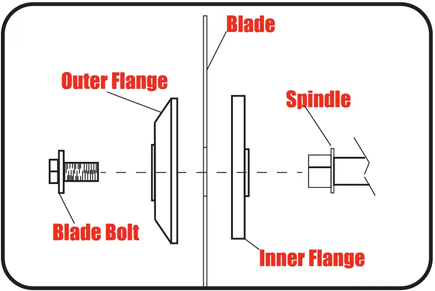 - Replace the outer flange by placing the cupped side of the flange against the blade followed by the blade bolt.