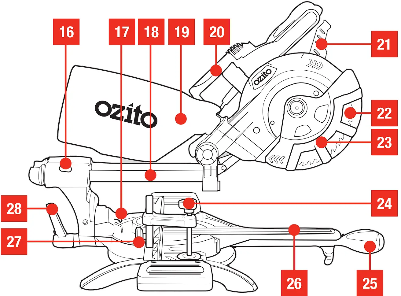 ozito SCMS-1621 Double Bevel Sliding Compound Mitre Saw