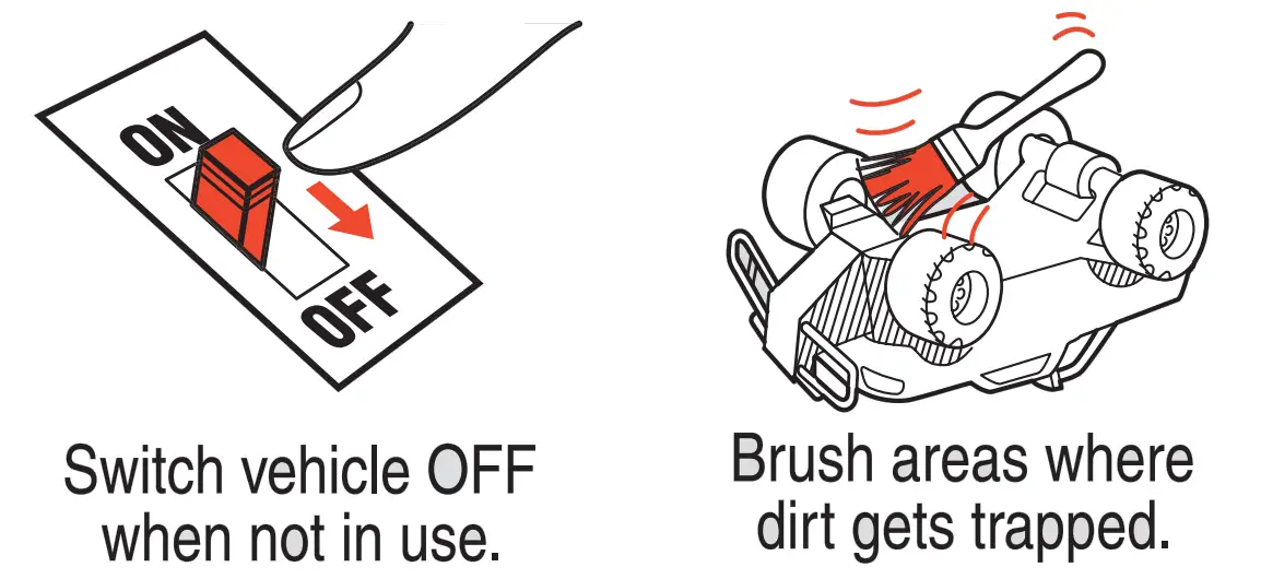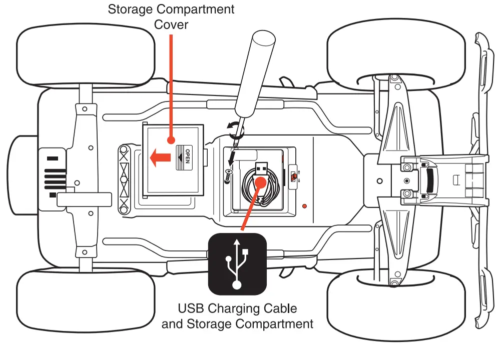 - Locate the ON/OFF switch and USB cord on the under-side of the vehicle.