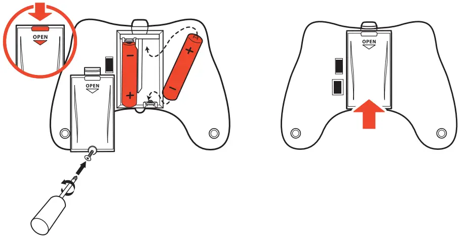 Make sure the positive(+) and negative(-) markings on the batteries match up to the ones inside the Battery Compartment. - Replace the Battery Compartment Cover and replace the screw.