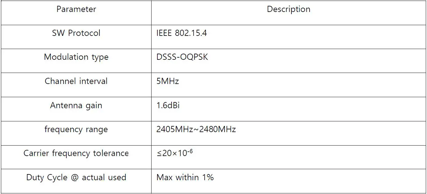 - Ensure that any new antenna type or higher gain than the listed antenna meets the requirements of FCC rule 15.203 and 2.1043 as permissive change procedure before replacing the antenna.
