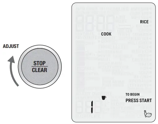 - Turn the ADJUST dial to adjust quantity or weight. Minimum amount is 8oz (225g) and maximum amount is 2 lb. (900g). Press START to begin cooking.