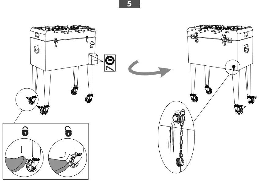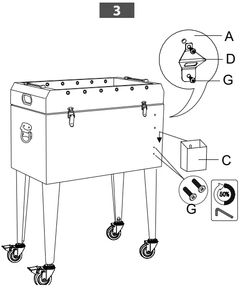 Check whether all the nuts are on the bolts and whether there are any sharp edges, replace part as necessary. It is necessary to check regularly for loose screws and the tightness of joints and/or fastenings. If necessary, nuts and bolts must be tightened. Before using, clean the Cooler completely with a soft dry towel. When not in use, wipe free of any dirt and wash with a mild solution of soap and water, rinse thoroughly and dry completely. Do not use chemicals or abrasive cleaners to clean this product. Store this Cooler in a cool, dry location when not in use.