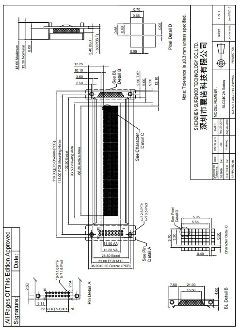 LCD Modules Since SUR LCM has been assembled and adjusted with a high degree of precision: avoid applying excessive shocks to the module or making any alterations or modifications to it.