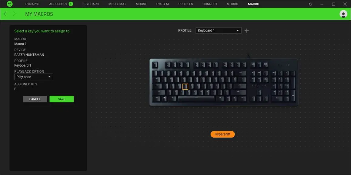 - Bind the new macro to a selected key (Hypershift is recommended to prevent accidental key press).