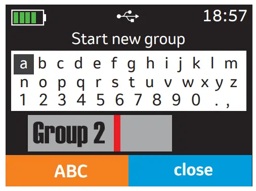 - Insert Group Name using the direction keys to navigate the letters, numbers, or symbols