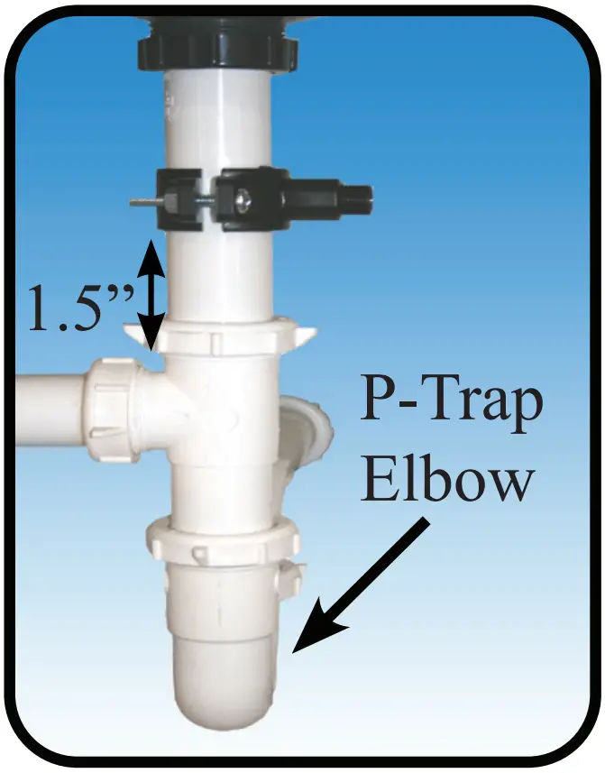Step 10 The drain saddle must be installed at least 1 ½” above the nut of the P-Trap elbow or cross bar from the garbage disposal to insure proper drainage. Using the 1/4″ drill bit, drill into the drain pipe at best available location as specified above, for drain saddle installation. Take extreme caution to only drill through one side of the drain pipe.