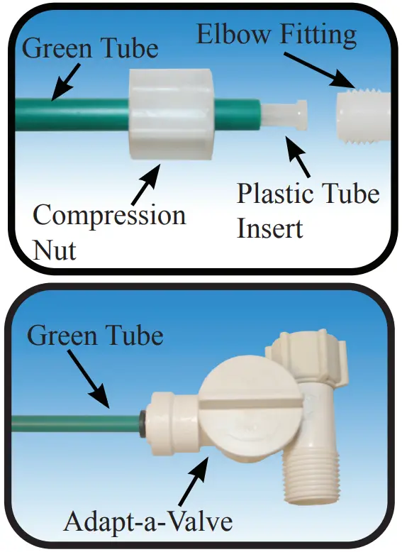 (Follow the green tube away from the RO system to find the adapta-valve.)