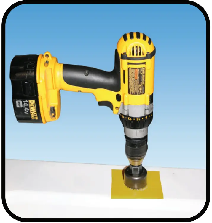 Step 3 Using a 1 ¼” diamond tip hole saw, proceed to drill the large hole. Keep drill speed on the slowest speed and use lubricating oil or liquid soap to keep the hole saw cool during cutting.