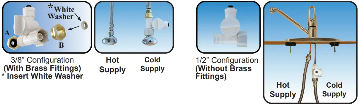 *Do not forget to install the white compression washer for 3/8” configuration.