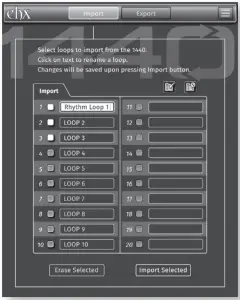 - On the app there are twenty loop slots corresponding to the twenty loops available on your 1440. Select all loops you wish to import by clicking the checkboxes.