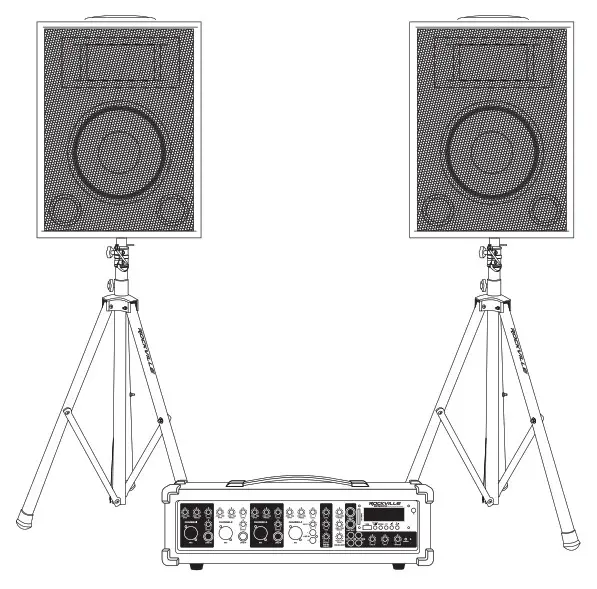 Much of the setup of the Rockville RPG2x10 V2 is similar to the setup of other sound systems, and many aspects require plain common sense. Safety should always be your first concern. Always use grounded outlets and three-wire extension cords. Run sound system cables in a way to prevent the danger of tripping and tape them down if needed. Place the speaker stands and mixer on a solid, level surface. Following these guidelines will help prevent personal injury and equipment damage, ensuring years of trouble-free use.