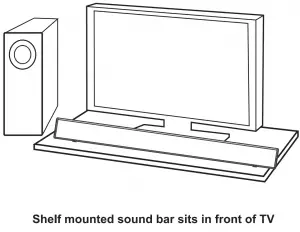 The soundbar comes with rubber feet already attached, so it will sit securely on any flat surface. Just center the bar under your TV screen. If your TV is housed in a media center, you can place the bar above the TV.