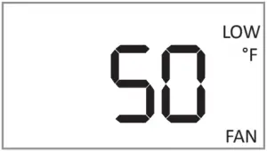 ![]() | After 15 seconds, the HVAC fan will turn on if it has been wired and set up to do so . The display will show FAN along with tESt . |
