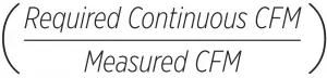 Measured CFM is entered during set up and Required Continuous CFM is calculated according to the equation below: