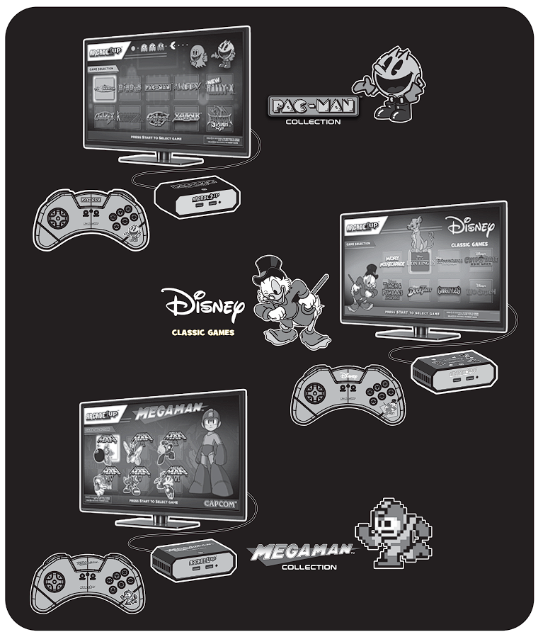 If you have questions regarding your Arcade1Up product or require technical support, contact Arcade1Up Customer Service at www.Arcade1Up.com and click on “Contact Us”.