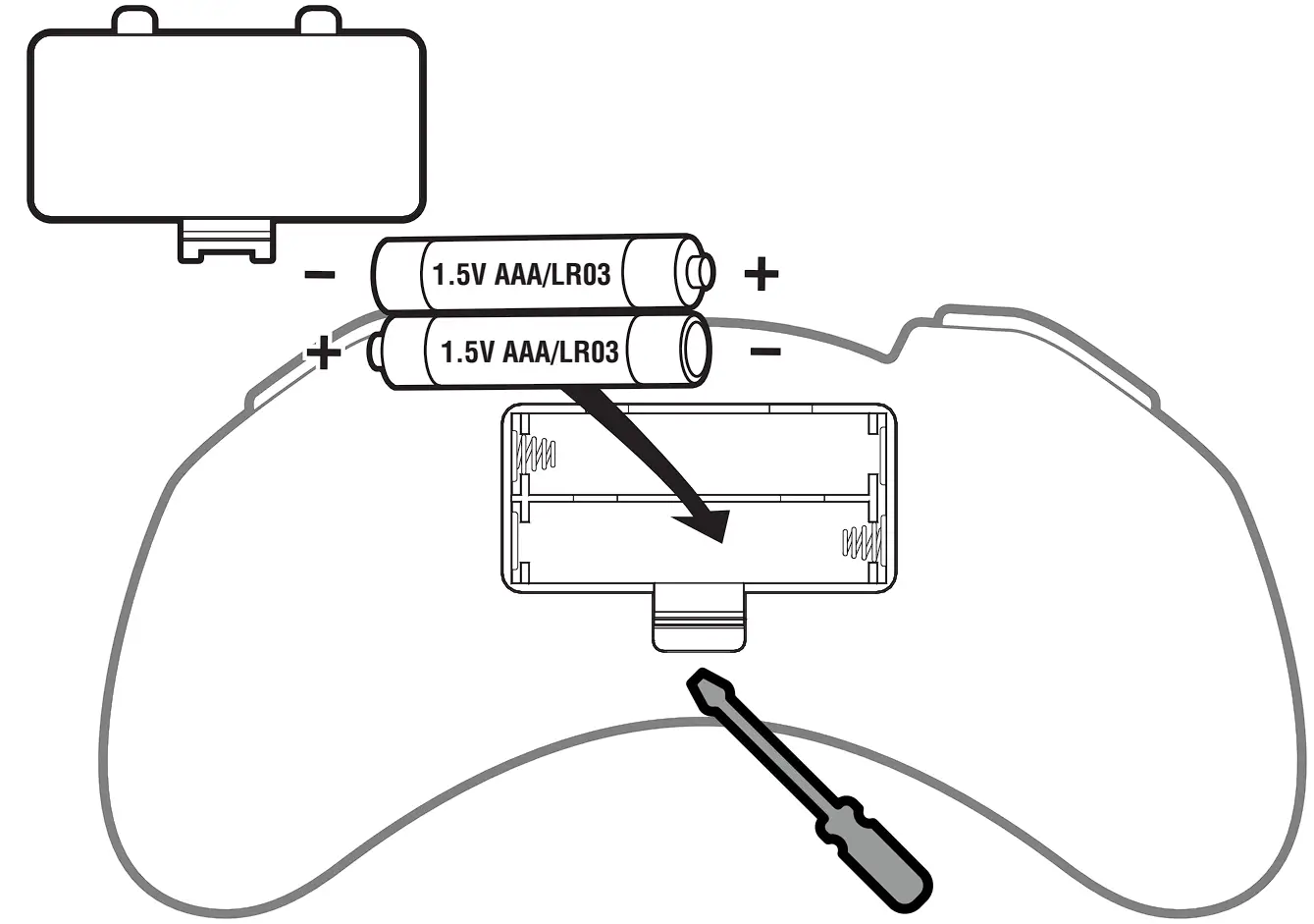 - Insert two 1.5V AAA batteries into the battery compartment.