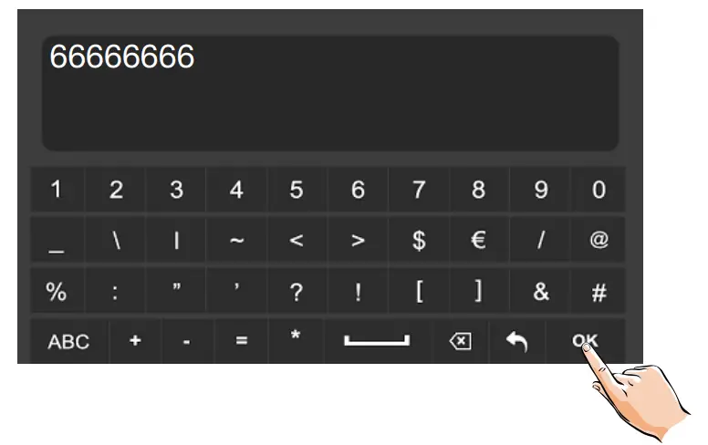 - Input the installer password(defaule:66666666), and press ‘OK’ to confirm.